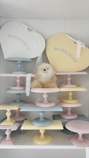 Instagramで公開して以来、おしゃれな方たちにたくさん反応をいただいた、グレイッシュなパステルカラーの木製ディスプレイスタンドです☺︎︎